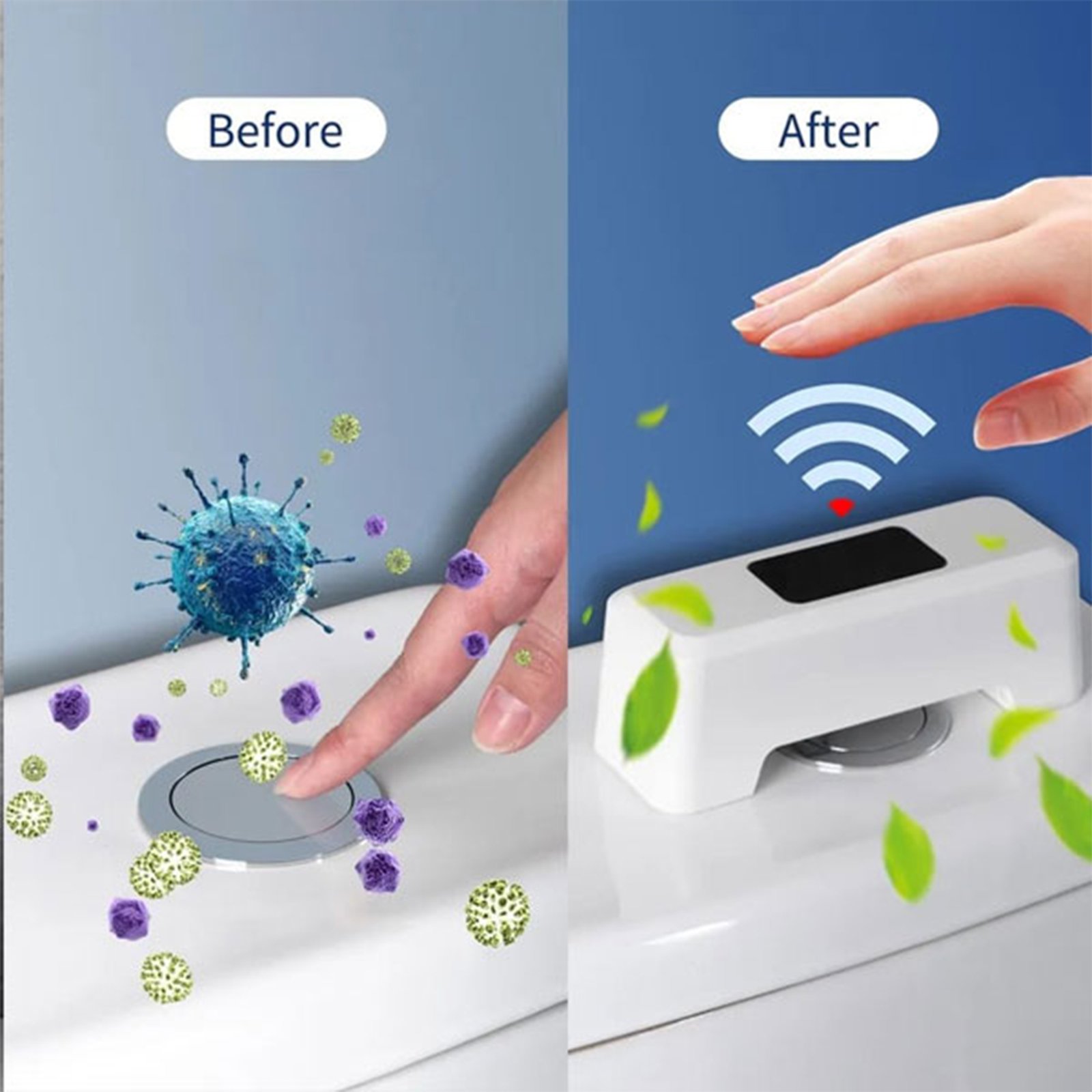 يغسل المرحاض بشكل تلقائي بدون ما تلمس بفضل الحساس الذكي.