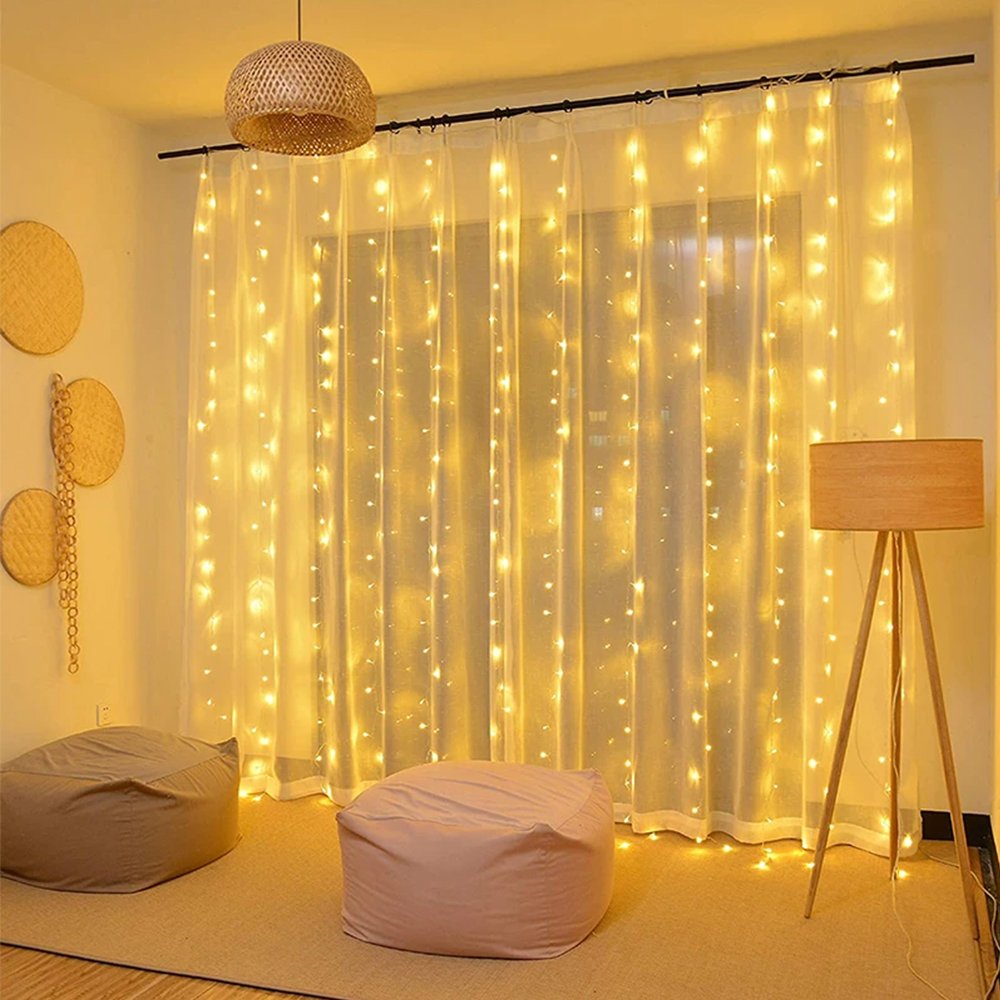 – الإضاءة عبارة عن لمبات متشابكة على هيئة ستارة أنيقة