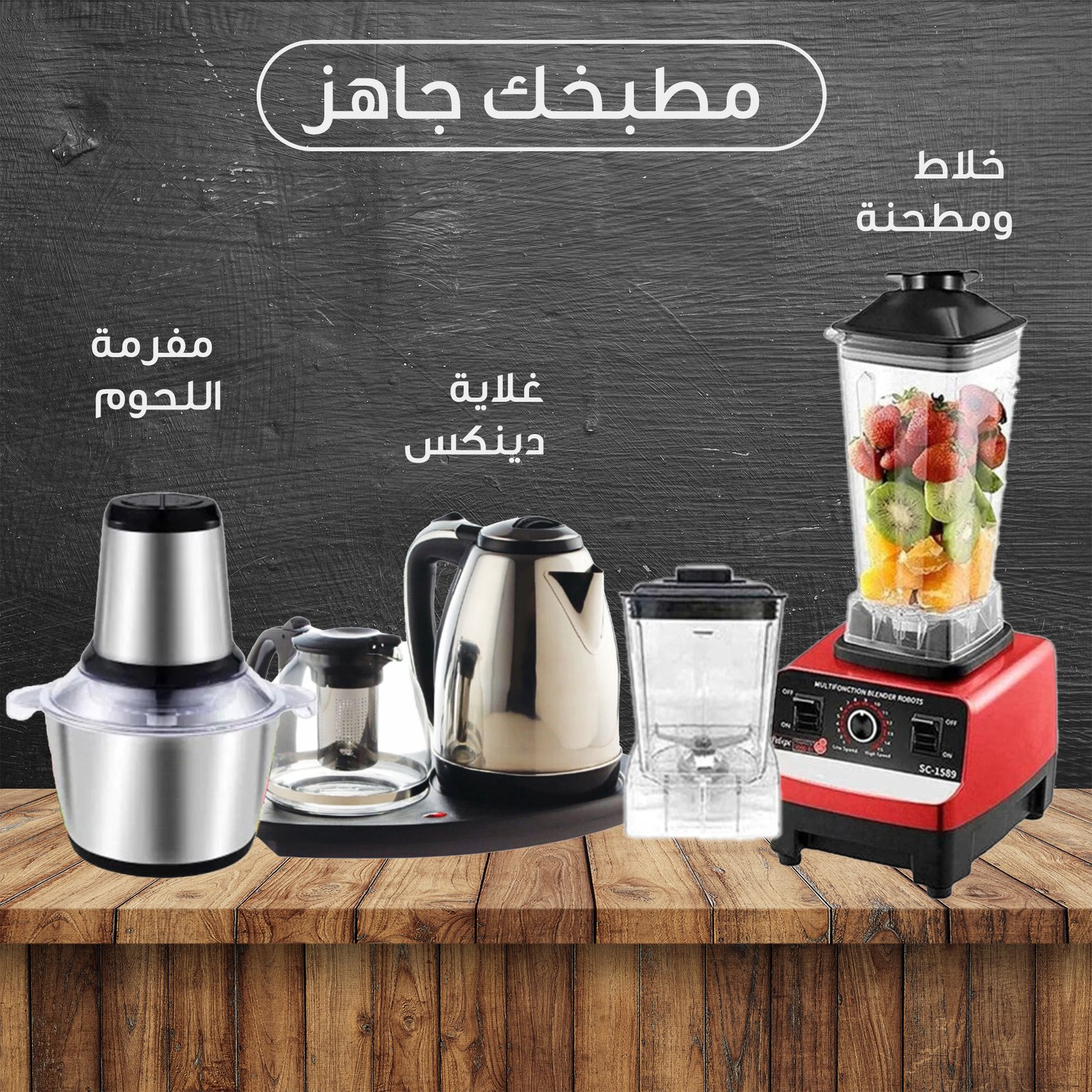 عرض خلاط الألماني الأصلي مع مطحنة بضمان 6 شهور + طقم غلاية علي قاعدة مع ابريق شاي هدية + مفرمة اللحوم المتينة 3 لتر