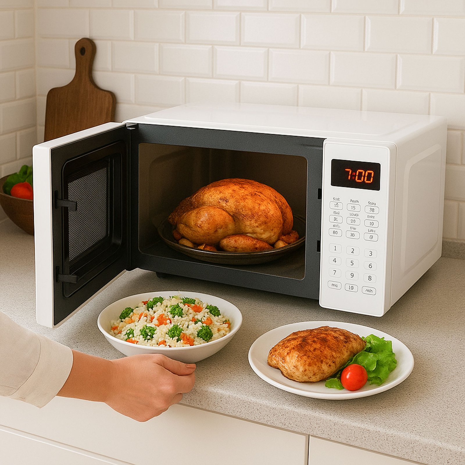 ضع الطعام في الصحن وأغلق الباب بإحكام.