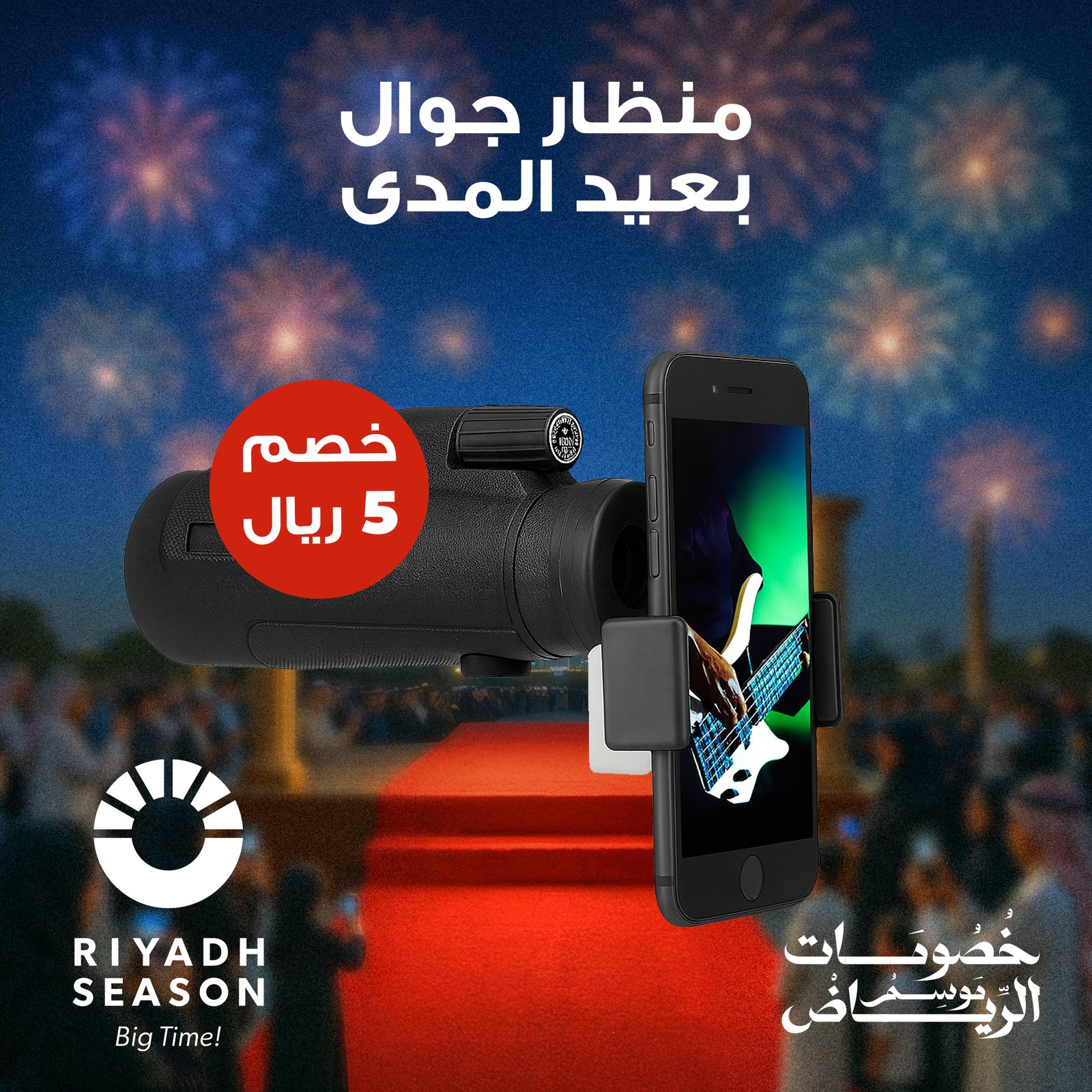 يجي معه قطعة تركب الجوال، تقدر تصور وتشارك اللقطات.